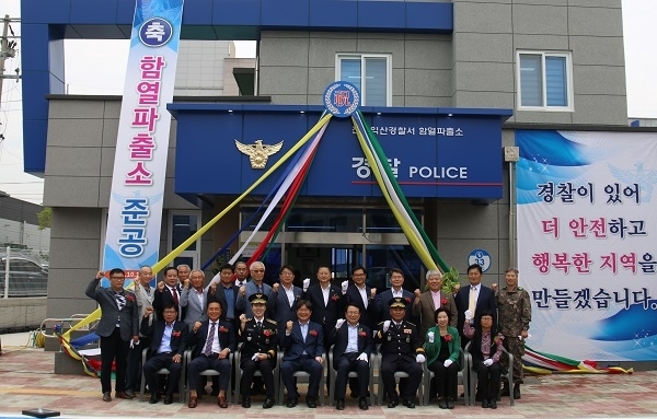 익산경찰서(서장 박헌수)는 지난 1일 정헌율 익산시장, 조규대 시의장, 이춘석 국회의원, 전정희 전 국회의원을 비롯한 지역 기관단체장 및 주민 등 60여명이 참석한 가운데 함열파출소 신축 준공식을 개최했다.