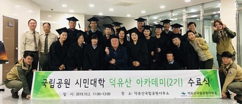덕유산국립공원사무소(소장 이규성)가 지역주민을 대상으로 실시하는 2019 덕유산 아카데미가 제2기 수료생을 배출했다.