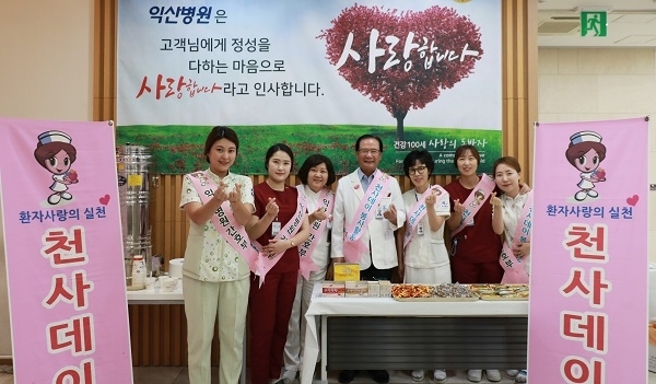 익산병원은 지난 4일 ‘1004 day(천사데이)’를 기념해 환자 및 내원객 등을 대상으로 발마사지,손발톱 관리,혈압·혈당측정,결핵상담 등 다채로운 사랑 나눔 봉사활동을 펼쳤다.
