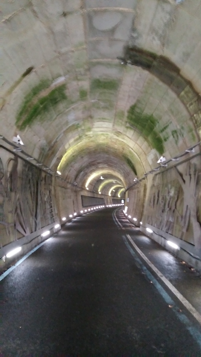 터널은 이제 자전거 도로가 되었습니다. 자전거를 타고 가는 사람을 형상화된 조각을 비롯한 각종 사진도 게시되어 있습니다.