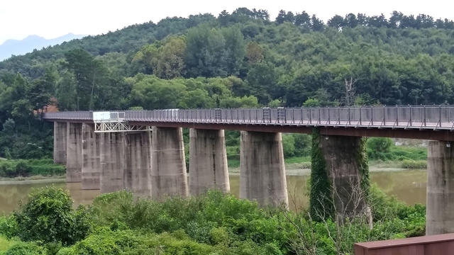 아, 이 찬란한 풍광이라니! 아름다운 우리나라입니다. 터널에 이어 일제때 세운 철로 교각에 새롭게 자전거 도로를 만들어, 이 상쾌한 풍광과 함께 신선한 감각을 선사해줍니다. 아픔은 기쁨의 또 다른 동의어일지도 모르겠습니다.