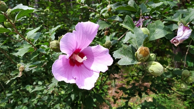 소나무가 곧게 서 있고 무궁화가 고결하게 피어 있군요.