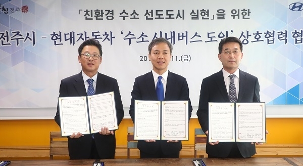 전주시와 현대차는 지난 11일 전주시장실에서 친환경 수소 시내버스 도입을 위한 협약을 체결했다.
