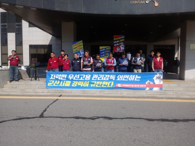 그러면서 “군산지역에서 발주처와 타지업체들에 의해 지역 노동자들의 일자리는 철저하게 배제되고 있는 만큼 시는 발주처와 원청사에게 지역민 고용에 관해 강력하게 요구하고 관리감독을 철저히 할 것을 촉구한다”고 밝혔다.