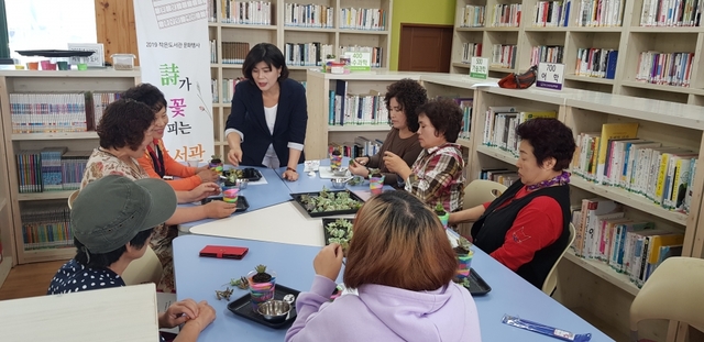 이 시간에는 힘든 농사일 속에 시를 접할 기회가 없던 농촌마을 주민들과 시를 낭송하고, 서로의 느낌을 이야기 한다. 또 시와 연계한 다육아트를 체험해 볼 수 있는 프로그램도 마련돼 주민들의 큰 호응을 얻고 있다.