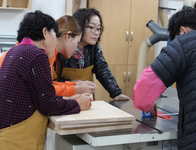 지난달 30일부터 시작한 강좌는 24명의 지역민이 참여해 2개월 동안 진행한다. 침대협탁 만들기를 통해 기초적인 공구사용법을 배운다.