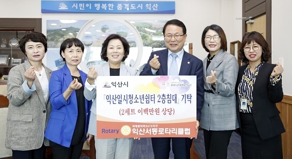 국제로타리3670지구 익산서동로타리클럽(회장 김복례)은 16일 정헌율 익산시장을 방문해 소외계층을 위해 써 달라며 원목 2층 침대 2세트(시가 200만원 상당)를 기탁했다.
