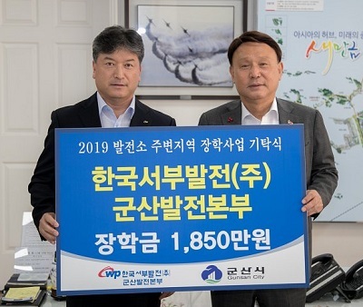 한국서부발전(주)군산발전본부(본부장 황해석)는 16일 발전소 주변지역에 거주하는 중?고등학생 37명에게 장학금 1850만원을 전달했다.