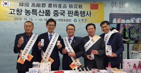 중국을 방문중인 유기상 고창군수와 이봉희 군의회 자치행정위원장 등 고창군 방문단은 16일 산동성 제남시 대명호 광장에서 우수 농특산품 홍보·판촉전을 가졌다.