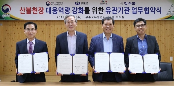 지난 16일 진행된 협약식을 통해 이들 4개 기관·자치단체는 △진화자원 상호 공유를 위한 운영시스템 제공 및 지원 △산불발생 시 초동진화를 위해 지역 및 산림소유 구분 없이 산불진화 공동대응 △각종 홍보활동 공동 추진 등을 상호 약속했다.