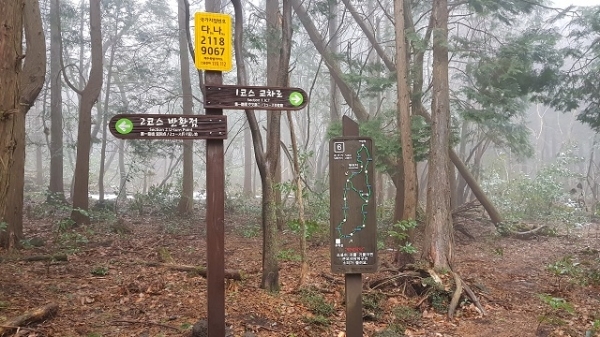 출발점에서 좌우 어느 방향으로 첫 걸음을 옮겨도 출발지로 돌아오기 때문에 기분에 따라 어는 곳을 선택해도 무방하다.