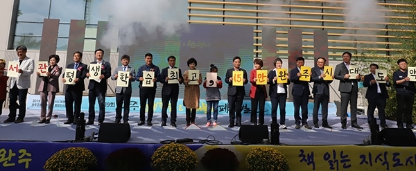 완주군과 책 읽는 지식도시 완주추진위원회가 주관한 이날 행사에는 박성일 군수, 최등원 의장과 군의원, 송지용·두세훈 도의원을 비롯해 주민 등 4000여 명이 참여, 책과 평생학습 축제를 만끽했다.