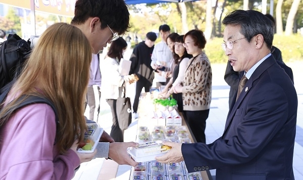 특히 곽병선 총장을 비롯한 주요 보직자들이 함께하며 학생들을 격려하고 소통의 시간을 갖고 있다.