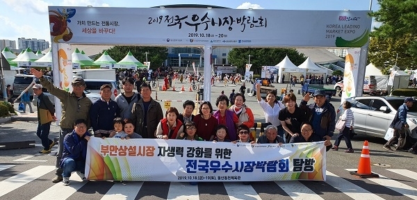부안상설시장은 시장의 브랜드와 우수상품의 홍보를 위해 지난 18일부터 20일까지 울산광역시에서 열린 ‘2019 전국우수시장박람회’에 참가했다. 전국우수시장박람회는 중소벤처기업부의 주최로 올해 16회째를 맞는 국내 최대 규모의 전통시장 축제로 올해는 역대 최대 규모인 전국 160여개 시장이 참가해 각자의 성공 비결을 공유하고 대표상품을 뽐냈다. 이번 전국우수시장박람회에는 부안상설시장의 대표적인 맛 집으로 손꼽히는 부안초밥집이 대표로 참가했으며, 부안상설시장상인회는 이날 참가자들의 사기진작과 판매를 돕기 위해 일찍이 울산시 동천체육관을 찾아 박람회를 방문한 관광객을 상대로 부안의 특산물을 적극적으로 홍보했다. 한편, 첫날 궂은 날씨 속에서도 꾸준한 매출을 올리던 부안초밥은 KBS 6시 내고향의 생방송 송출로 주문량이 더욱 늘어 이튿날까지 고객들이 줄서서 주문을 기다리는 등의 폭발적인 인기를 실감했고, 부안상설시장의 대표적 수출품인 「참뽕간장새우」가 소상공인진흥공단과 연계한 인터넷 생방송을 타면서 이름을 널리 알렸다.