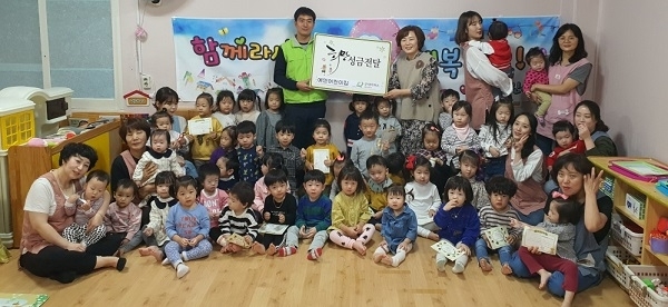 익산시 영등동 소재 에덴어린이집 어린이들이 뜻깊은 이웃사랑 나눔 실천에 나서 잔잔한 감동을 주고 있다.