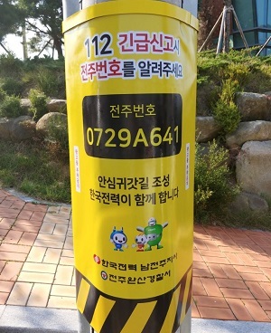 이에 전주완산경찰서는 지난 9월 27일부터 한국전력 남전주지사와 업무협약을 맺고 112신고 골든타임을 확보하기 위한 ‘안심귀갓길, 안심신고망’ 조성 사업을 추진해 왔다.