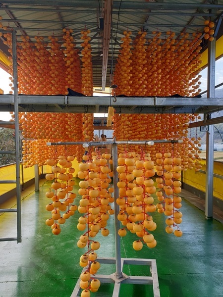10월 말 현재 농가들은 나무에서 채취한 곶감용 감의 껍질을 깎아 말리는 작업에 한창이다.