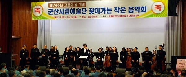 군산교도소(소장 김영식)는 28일 ‘제74주년 교정의 날’을 기념해 군산시립예술단을 초청, 수형자들의 정서 함양과 교정 교화를 위한 음악회를 개최했다.