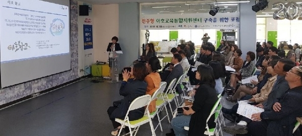 전주시는 28일 야호학교 덕진틔움공간에서 전주교육지원청 관계자와 민간 교육공동체 관계자 등 80여 명이 참석한 가운데 ‘전주시 야호교육통합지원센터(가칭) 구축을 위한 포럼’을 열었다.