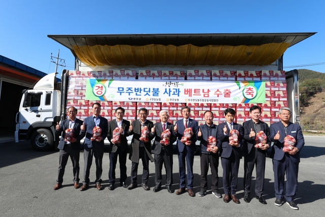 무주군은 무풍농협 농산물산지유통센터에서 베트남에 보낼 무주반딧불사과 13t을 선적했다고 밝혔다.