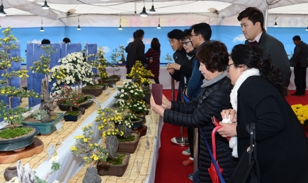 전시회에는 원예활동생활화 연구회 회원들의 석부작, 목부작 등 국화분재 100여점과 현애, 대륜 등 단체작품 200여점이 선보인다. 올해로 여덟 번째 전시회다.