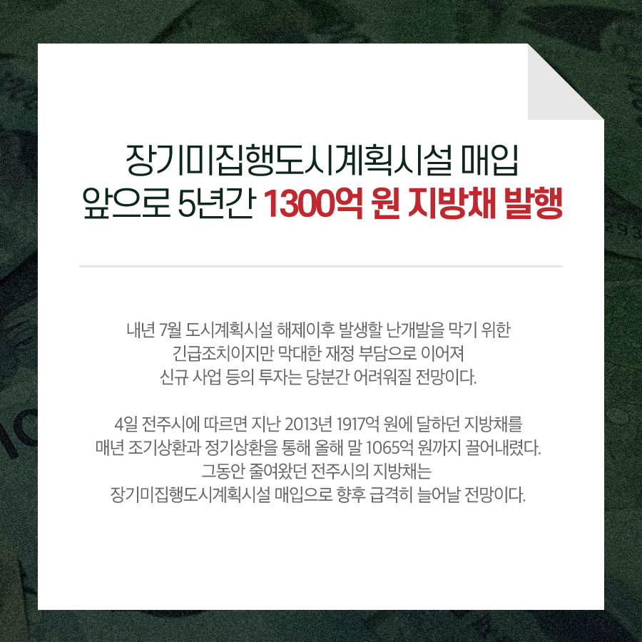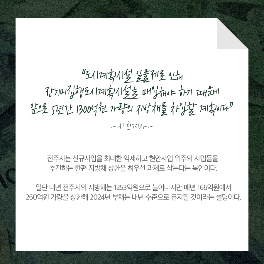 [카드뉴스] 전주시, 늘어가는 지방채 '골머리'