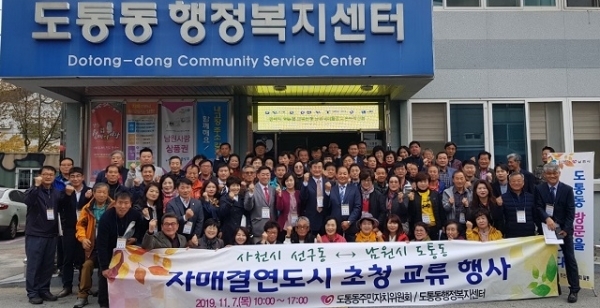 남원시 도통동 주민자치위원회는 7일 도통동 행정복지센터에서 경남 사천시 선구동 주민자치위와 자매결연 20주년 화합 교류행사를 열었다.