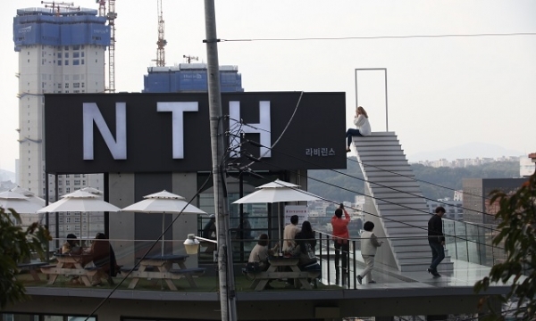 루프탑 카페에는 다양한 디자인의 테이블과 조명으로 한껏 분위기를 냈다.
