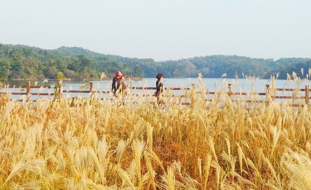 가을에는 호수 둑길에 은빛 물결이 일렁이는 아름다운 억새밭 가을 풍경을 볼 수 있는 곳입니다.