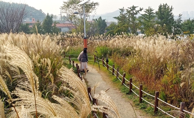토끼와 거북이와 인사하고 억새밭 산책로를 걸어가면 가을 햇살을 받으며 바람에 산들산들 흔들리는 억새꽃들을 볼 수 있는데요.