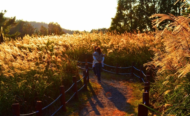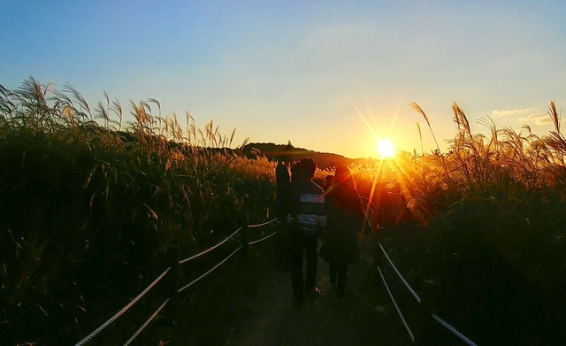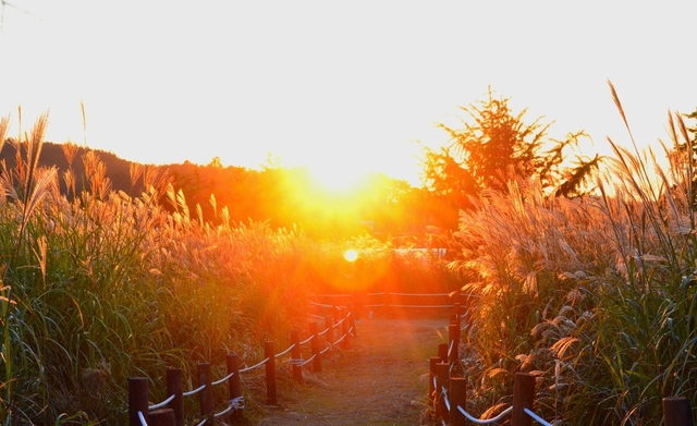 해피엔딩으로 끝나는 영화의 마지막 장면처럼 따뜻하고, 포근하게 다가오는 저녁노을 억새밭 길의 느낌입니다.