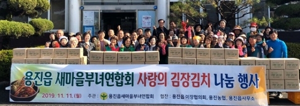 이순임 회장은 “용진읍 ‘얼굴 없는 천사’와 이장협의회 ‘사랑의 벼 재배’처럼 뜻깊고 의미 있는 행사에 함께하고자 부녀회에서도 뜻을 모아 김치나눔행사를 진행했다”며 “용진읍이 사람 냄새 나고, 정이 넘치는 따뜻한 지역으로 발전했으면 좋겠다”고 말했다.