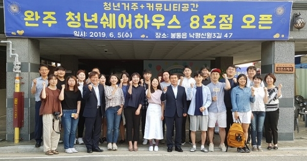 지난 6월 조성된 봉동읍 낙평리의 제8호 ‘복합청년쉐어하우스’에 10명의 청년이 입주해 생활하고 있다. 봉동의 8호점은 청년들이 주거공간에 더해 커뮤니티 공간을 동시에 조성하자는 의견을 내면서 참여예산으로 반영됐다.