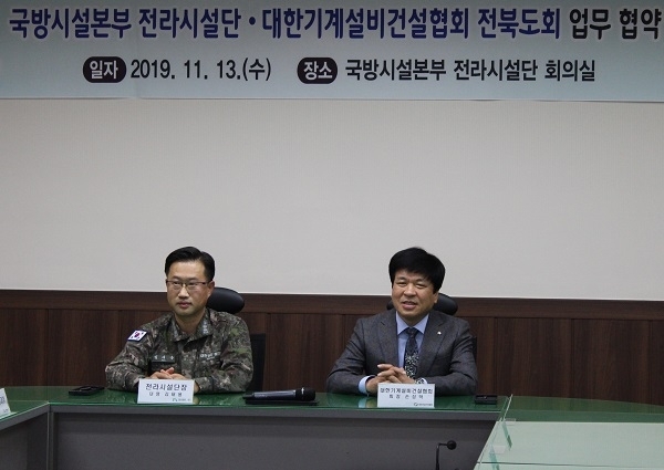 대한기계설비건설협회 전라북도회(회장 손성덕)와 국방시설본부 전라시설단(단장 해군 대령 김태용)은 지난 13일 국방시설본부 전라시설단에서 건설기술발전과 군사시설 공사품질 향상을 위한 MOU를 체결했다.