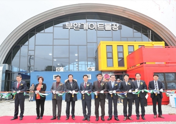 부안군은 지난 18일 부안읍 실내게이트볼장(서외리 572-2번지)에서 권익현 군수, 이한수 군의회의장, 기관단체장, 읍·면 게이트볼협회장 및 마을주민을 포함해 200여명이 참석한 가운데 개관식을 개최했다. 부안읍 실내게이트볼장은 대지면적 2,519㎡, 연면적 487.96㎡ 규모로 여름 장마철과 겨울철에도 이용 할 수 있는 전천후시설이며 사무실, 휴게실, 실내·외 게이트볼장으로 조성되어 있다.