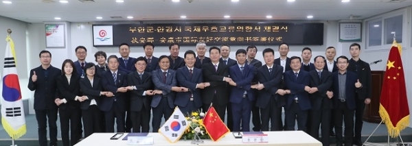 부안군(군수 권익현)과 중국 섬서성 안강시(시장 자오쥔민)는 지난 18일 부안군청 대회의실에서 협력강화 및 교류 확대 등 상호협력을 통한 공동발전을 도모하기 위해 국제우호도시교류 의향서에 서명했다. 이날 체결에는 권익현 군수 등 부안군 대표단 6명과 자오쥔민 안강시 시장, 안강시외사판공실 탄쉬에펑주임 등 16명이 참석했다. 주요 의향서 내용은 행정·경제·문화·교육·관광 등 지속적인 교류협력 추진, 청소년들의 해외연수 및 문화체험 등 문화교류, 지역발전 및 주민편의 증진을 위한 시책 공유, 주민소득 향상을 위한 농·특산물 교류 등을 통해 양도시간 경제적 이익을 도모키로 했다.