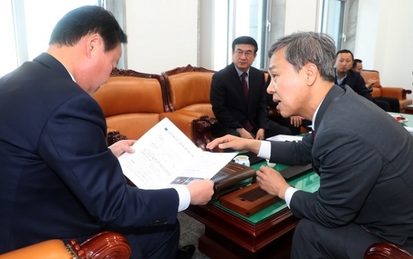 김재원 예결위원장과의 면담에는 정운천 의원이 동행했다.