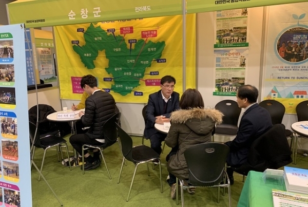 순창군이 지난 22일부터 3일간 서울 서초구 aT센터에서 열린‘대한민국 농업박람회’에 참가해 귀농·귀촌에 관심 있는 도시민에게 열띤 홍보전을 펼쳤다.