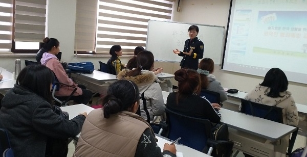 이날 교육에서 경찰은 언어소통 문제로 어려움을 겪는 결혼이주여성들이 언제, 어디서나 경찰관의 도움을 받을 수 있도록 ‘112 신고 요령’을 적극 홍보했다.