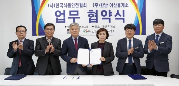 ㈜한남이 운영하는 익산 여산휴게소는 26일 사단법인 한국식품안전협회와 휴게소 위생 교육, 안전한 먹을거리 환경구축 및 안전 정보의 교류 등 지원을 위한 업무협약을 체결했다.