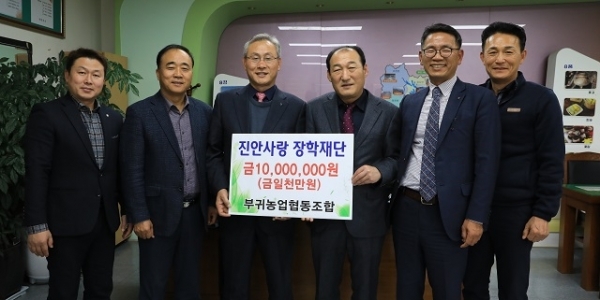 부귀농업협동조합(조합장 정종옥)이 25일 지역인재 육성에 써 달라며 진안사랑장학재단에 장학금 1000만원을 기탁했다.