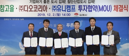 운동용 매트를 생산하는 다오코리아가 김제시 지평선산업단지에 공장을 짓기로 하고 2일 투자 협약식을 했다.