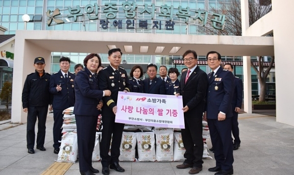 부안소방서는 지난 4일 부안의용소방대연합회와 함께 부안사회복지관을 방문해 119소방가족 사랑 나눔 행사를 가졌다. 이날 119소방가족 사랑 나눔 행사는 어려운 이웃들이 올겨울 따뜻한 생활 환경을 누릴 수 있도록 정성을 모은 것으로 쌀 50포대와 주택용 소방시설을 전달했다. 부안의용소방대연합회는 꾸준한 불우이웃돕기 행사를 시행하고 있으며, 화재 현장에서의 적극적인 지원과 각종 화재 예방 캠페인 등을 통해 지역의 안전지킴이 역할을 톡톡히 하고 있다. 전두표 소방서장은 “부안소방서 의용소방대가 관내 재난 발생 시 소방의 보조역할 및 봉사활동 등 사회공헌활동을 하며 지역사회에 귀감이 되고 지역 발전에 기여함에 감사드린다”며 “부안지역 이웃과 더불어 함께하는 분위기가 형성되기를 기원한다”고 말했다.
