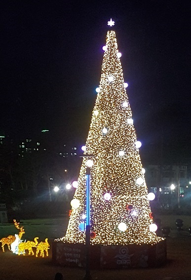 부안군청 잔디광장에 크리스마스 트리 불 밝혀