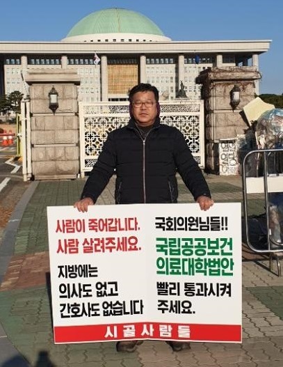 전북도의회 이정린 의원(남원1)은 5일 국회 앞에서 국립공공보건의료대학 설립·운영에 관한 법률(이하 공공의대법) 통과를 호소하는 1인 시위를 벌였다.