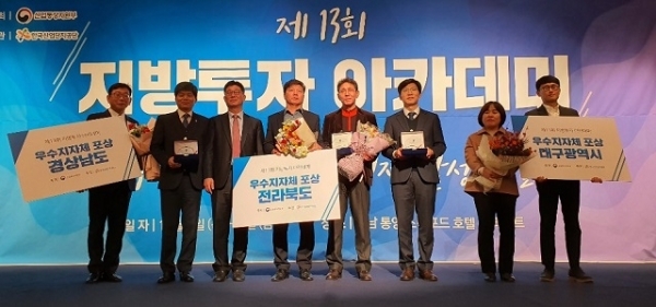5일 산업통상자원부 주관으로 경남 통영에서 개최된 ‘제13회 지방투자아카데미’에서 전북도는 2019년 지방투자촉진사업 우수 지자체에 선정되어 표창패를 받았다.