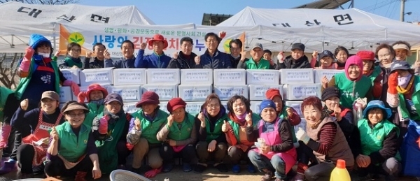 고창군 대산면 새마을지도자협의회(회장 오유종)와 주민자치위원회(회장 신종원)도 지난 5일 장동마을에서 ‘2019 사랑의 김장김치 담그기 및 나눔 행사’를 열었다. 이날 회원과 지역주민 등 50여 명이 참여한 가운데 지역에서 생산한 1000포기 배추로 김치를 담가 각 마을의 경로당과 독거노인 등 어려운 이웃에게 전달했다.