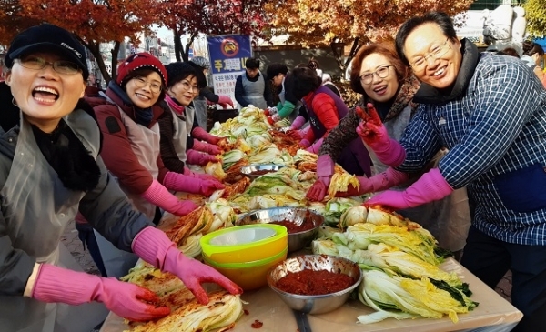 익산시 영등2동(동장 박기성)은 지난 5~6일 양일간에 걸쳐 관내 4개 단체 회원들과 함께 사랑의 김장김치 나눔행사를 가졌다.