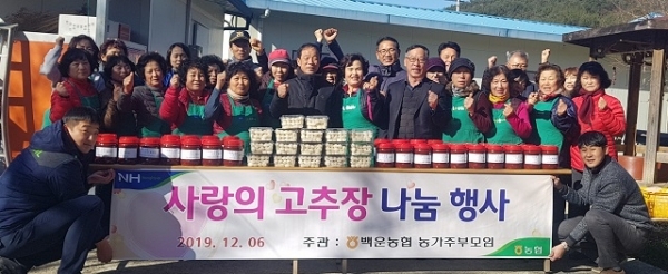 한편, 백운농협 농가주부모임은 해마다 고추장 말고도 사랑의 밑반찬 나눔, 쌀 전달, 농가일손 돕기, 장학금 전달 등 지역사회를 위한 공헌 활동에 앞장서는 관내 여성 단체 리더 그룹으로 평가받는다.
