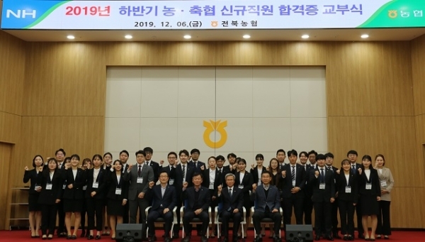 전북농협(본부장 유재도)는 지난 6일 지역본부 2층 대회의실에서 2019년 하반기 농·축협 동시채용 최종합격자 33명에게 합격증을 교부했다.